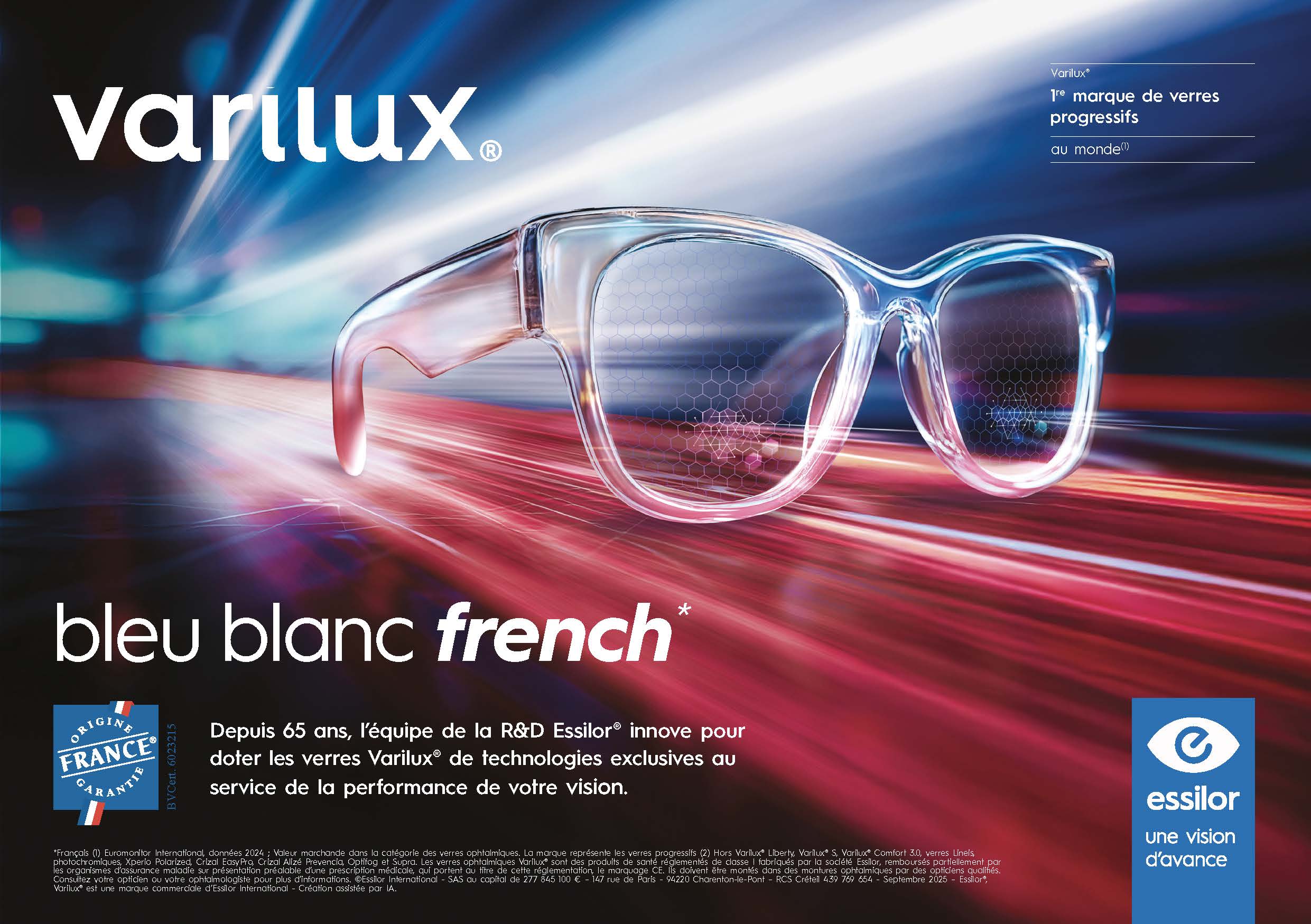 Dans ce contexte, Varilux capitalise sur sa production française – fruit de 65 ans d’innovation menée par les équipes R&D Essilor en France – pour réaffirmer ses valeurs de proximité, de qualité et de responsabilité.