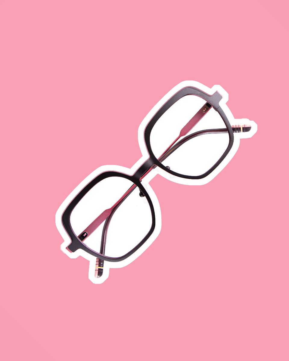 La tranche colorée uniquement, mise en valeur par la surface ample du titane, suffit à elle seule à souligner la monture. Les branches adoptent un nouveau profil : elles débutent sur une base épaisse, avant de s’affiner en une structure filaire aérienne. De loin, THAÏS évoque presque une monture acétate par ses proportions. De près, elle surprend en réalisant que c'est bel et bien du titane. En somme, un look féminin et contemporain.