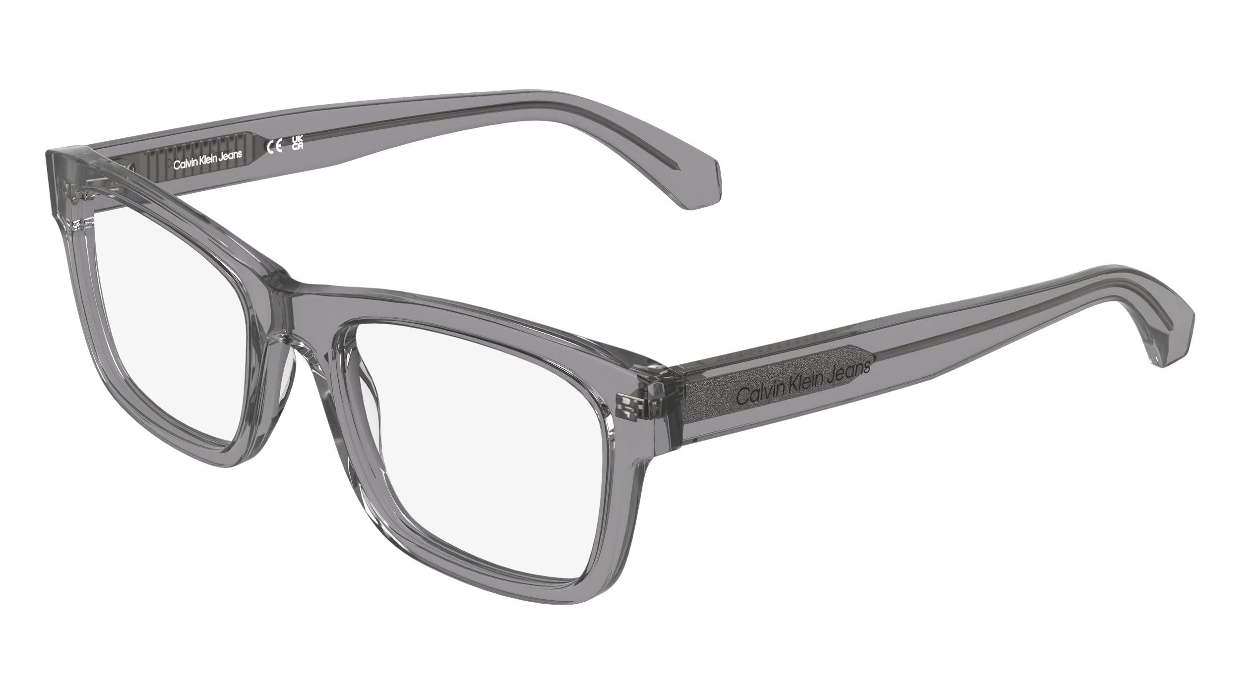 Ce modèle optique est réalisé en acétate photosensible aux UV, qui change de couleur lorsqu'il est exposé à la lumière, et présente une face rectangulaire revisitée associée à des branches mettant en valeur une âme métallique brillante apparente ainsi que le logo distinctif Calvin Klein Jeans. Ce modèle est proposé en Transparent Grey évoluant vers Dark Grey, Transparent Green évoluant vers Dark Green, Transparent Azure évoluant vers Blue et Transparent Yellow évoluant vers Lime.